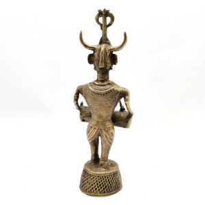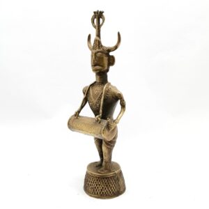 A large and dramatic ‘Bastar bronze’ (actually brass made in the dhokra technique), in the form of a drummer with the head of a male deity, reminiscent of the Hindu god Shiva.